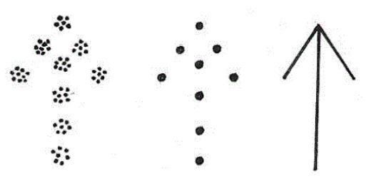 识别刺激物图形涉及到许多因素,其中两个是图形的视觉方向和图形的周围背景。图形的视觉方向是指观察者感知到的图形的顶部、底部和两侧的方位。如果这些因素以某种方式改变,人们对其的感知会随之改变。图23中的左侧图形看起来与图中的右侧图形不同。实际上,它们在几何上是等同的,仅以不同的方向显示。因此,图形方向会明显影响对图形的感知。