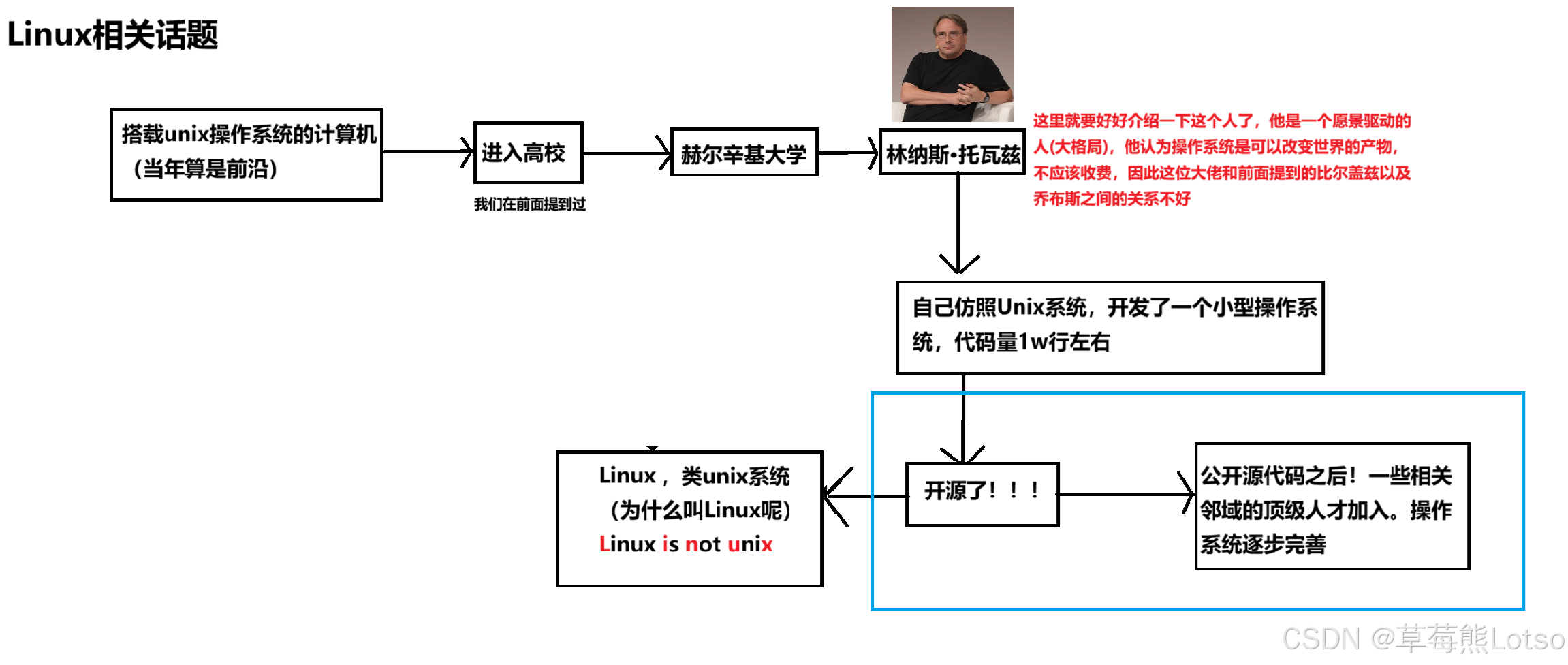- 最初动机:他只是想为自己的 PC 打造一个 “能自由使用、可修改” 的操作系统,用于学习和运行程序;