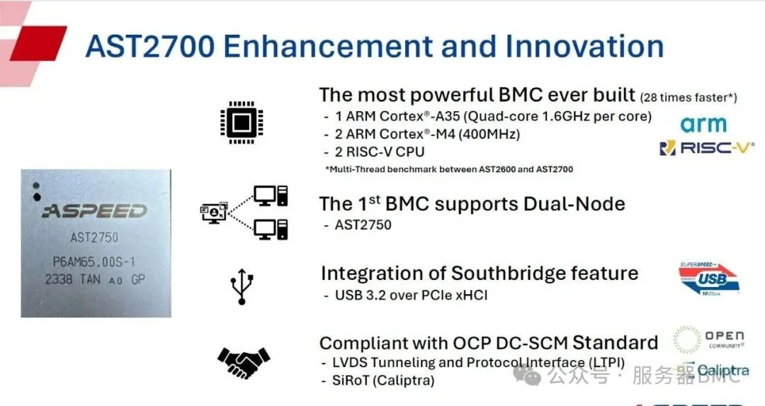 按照BMC芯片公司Aspeed的宣传,其最新的BMC芯片AST2700具有如下几个新功能: