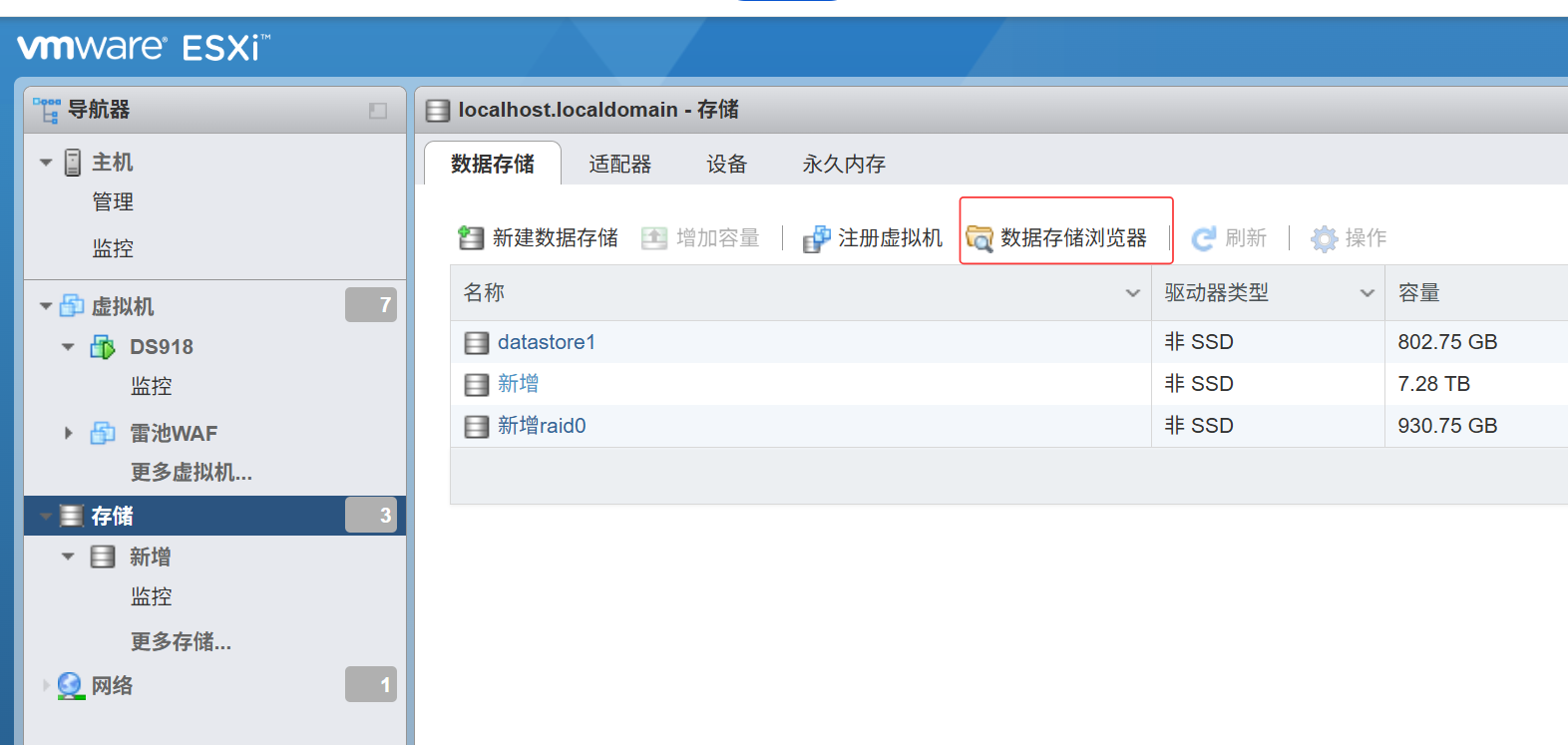 将这两个文件上传到服务器,在服务器上点击存储里面的数据存储浏览器: