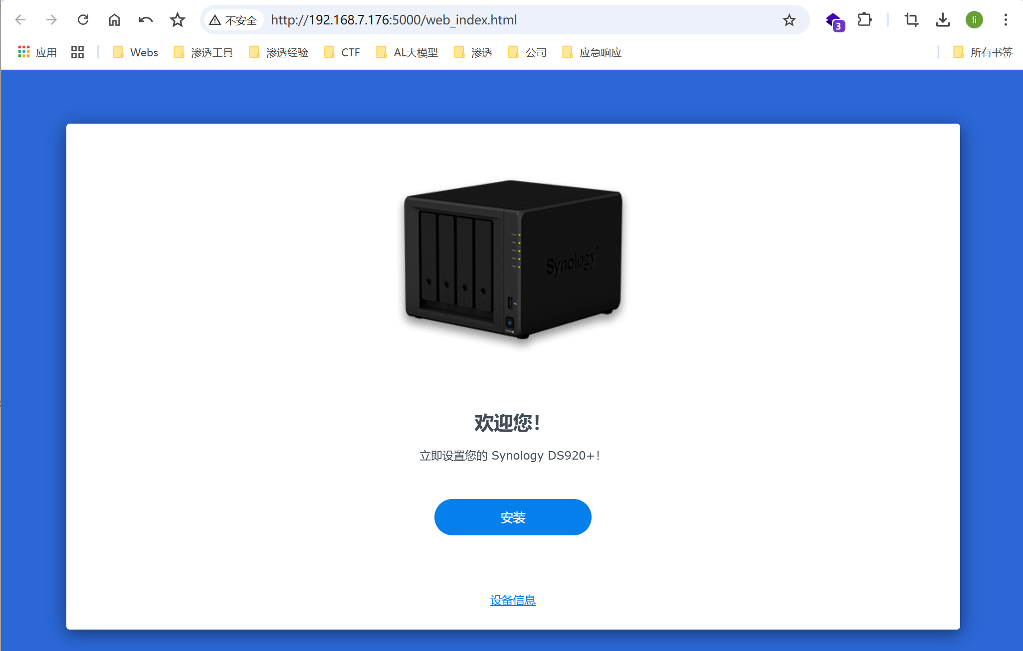在另一台同一局域网的电脑上使用这个url地址在浏览器打开进行黑群晖的配置:
