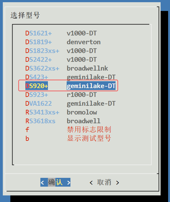 选择型号“DS920+”: