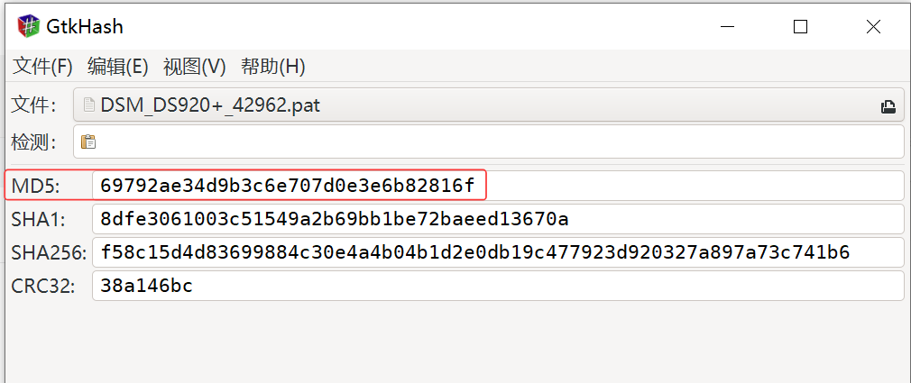 我们需要使用这个工具来计算下载好的DSM_DS920+_42962.pat文件的MD5值,运行.exe文件: