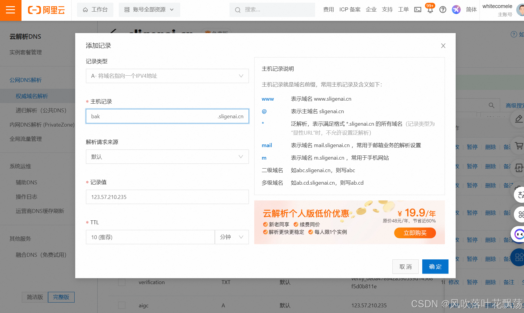 前置条件:我默认你已经有域名了,如果没有需要在国内的阿里云、腾讯云、华为云,国外的Hostinger等云服务商都提供域名注册和域名解析服务。找一个你喜欢的就可以,在这里我用的是阿里云注册的域名进行演示。