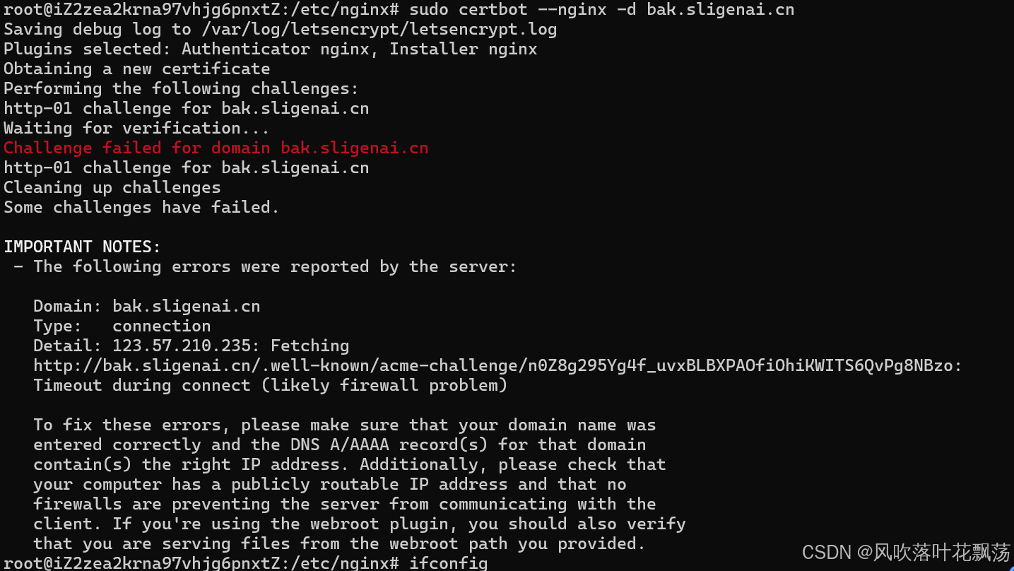 注1:如果你没有开放443,80端口,申请的时候会报错