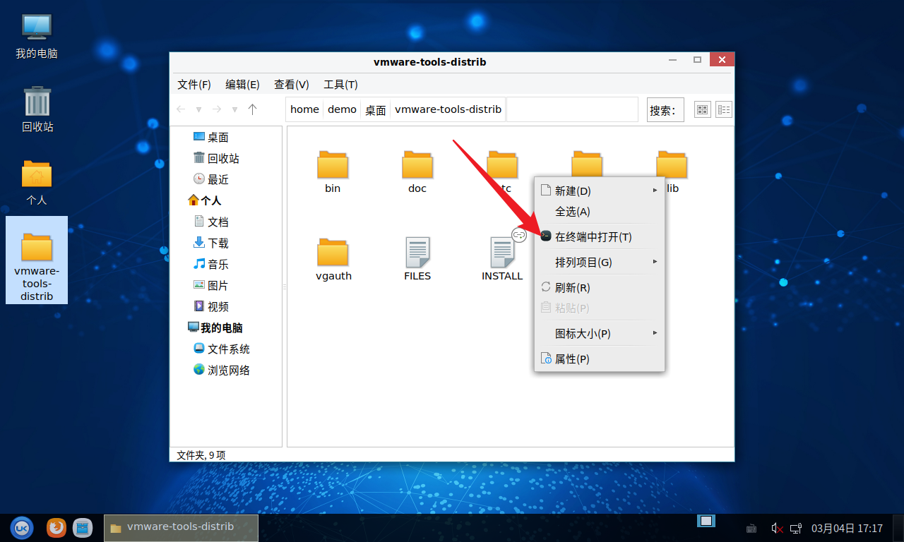 解压到桌面之后,在桌面上生成一个vmwaretools的目录,鼠标左键双击进入到里面
