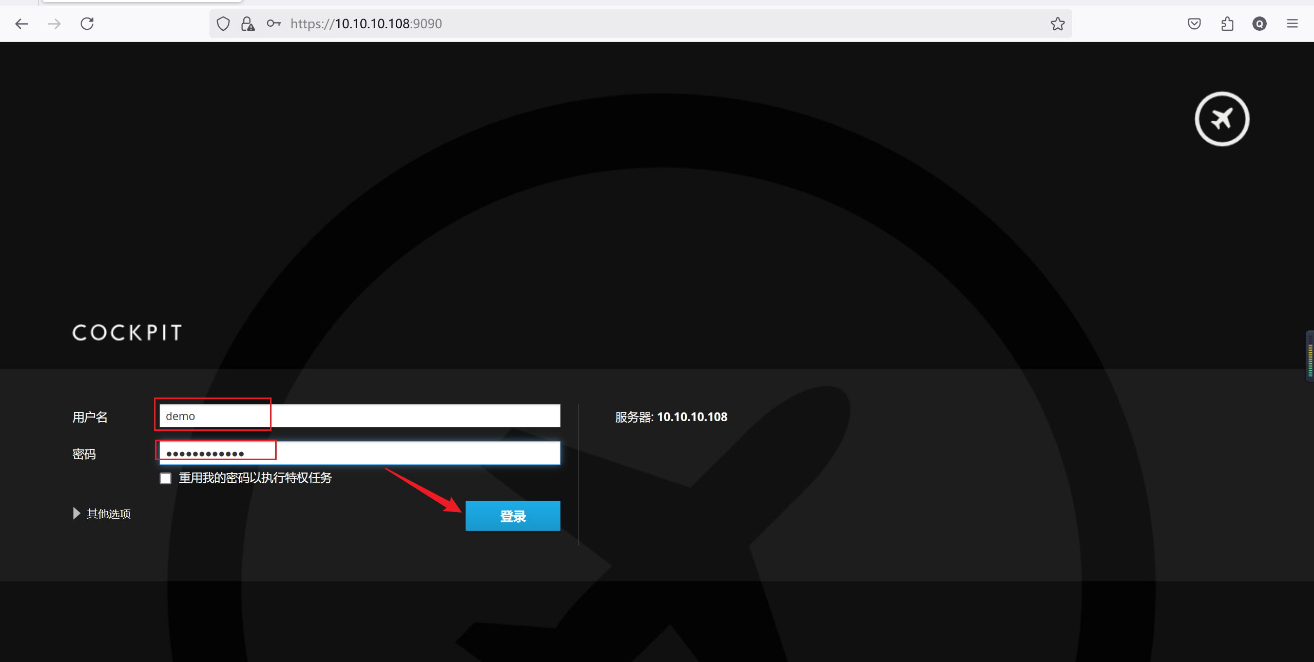 https://ip+9090访问这里是:https://10.10.10.108:9090/