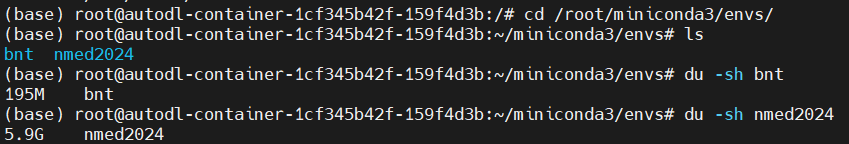 du -sh /root/miniconda3/pkgs/ && rm -rf /root/miniconda3/pkgs/* # conda的历史包