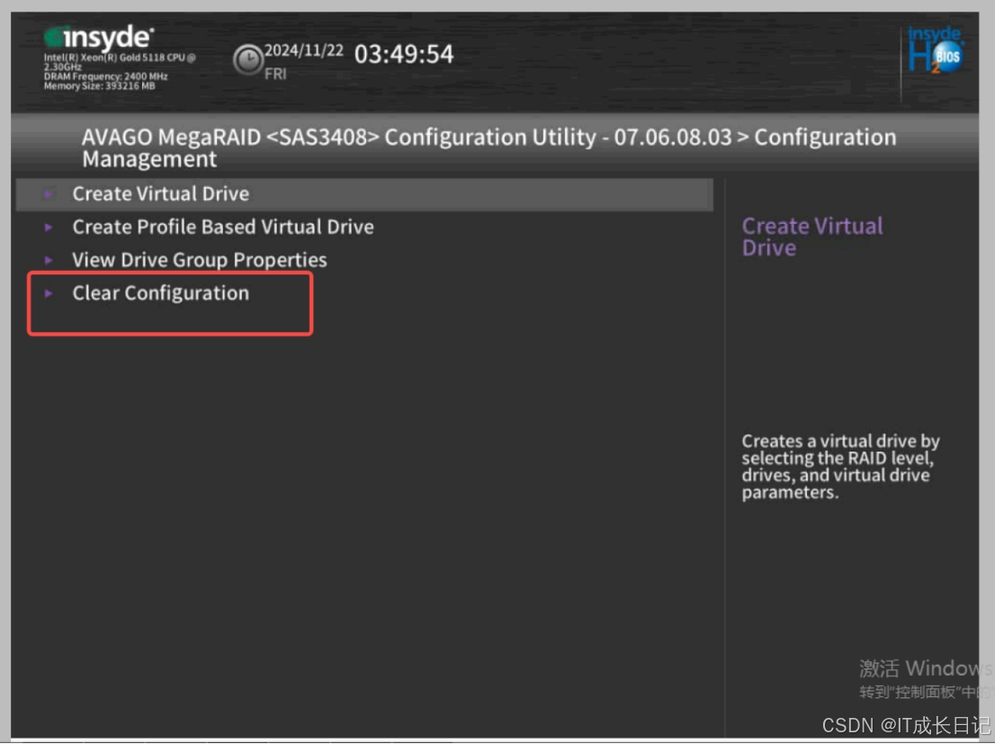 6.点击:Clear Configuration,清理掉之前的RAID配置