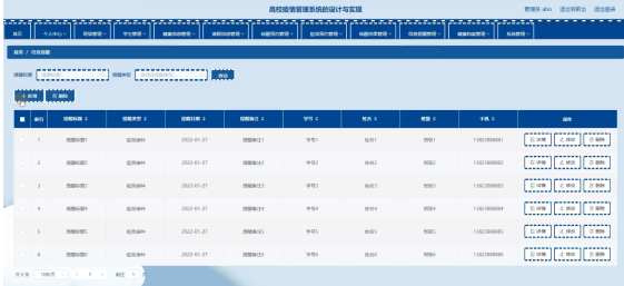 计算机毕业设计springboot高校疫情管理系统的设计与实现 基于SpringBoot的校园疫情防控信息平台的设计与实现 高校突发公共卫生事件在线管控系统
