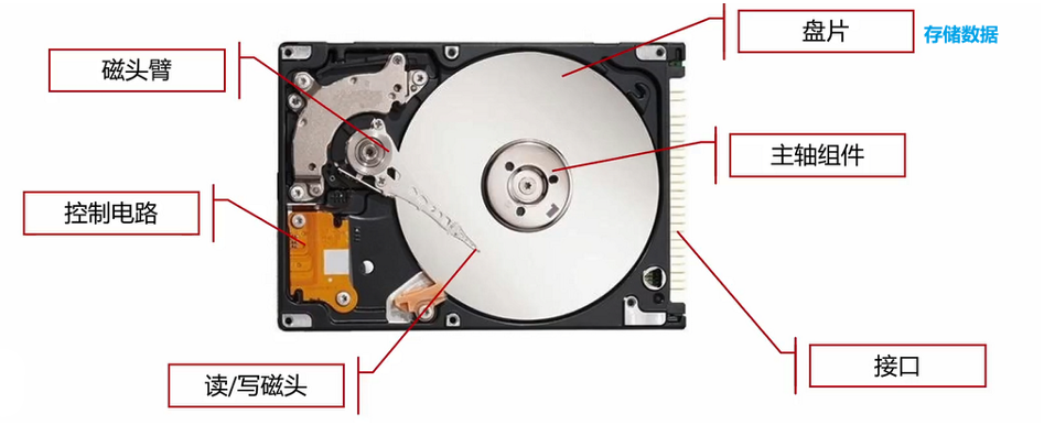机械硬盘里面由1张或几张可读写数据的储存盘体组成,盘体上有只读写枪,有点象老式光碟机,硬盘里面还有一保马达带动储存盘转动,从而能读取到不同部分的数据。