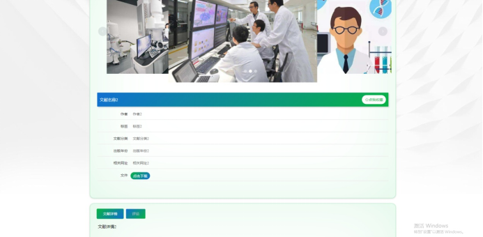 文献信息:在文献信息页面的输入栏中输入文献名称、作者、标签和出版年份进行查询,可以查看到文献详细信息,并根据需要进行评论或收藏操作;文献信息页面如图5-2所示: