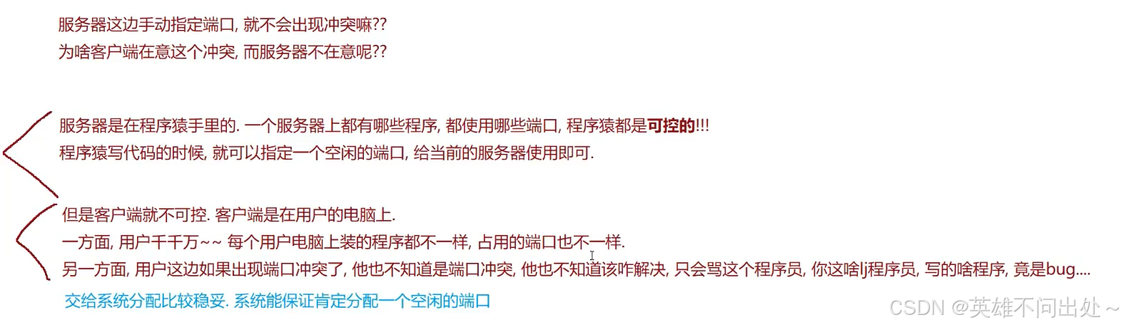 服务器这边手动指定端口号,就不会出现冲突了吗?为什么客户端在意这个冲突,服务器不在意这个冲突呢?