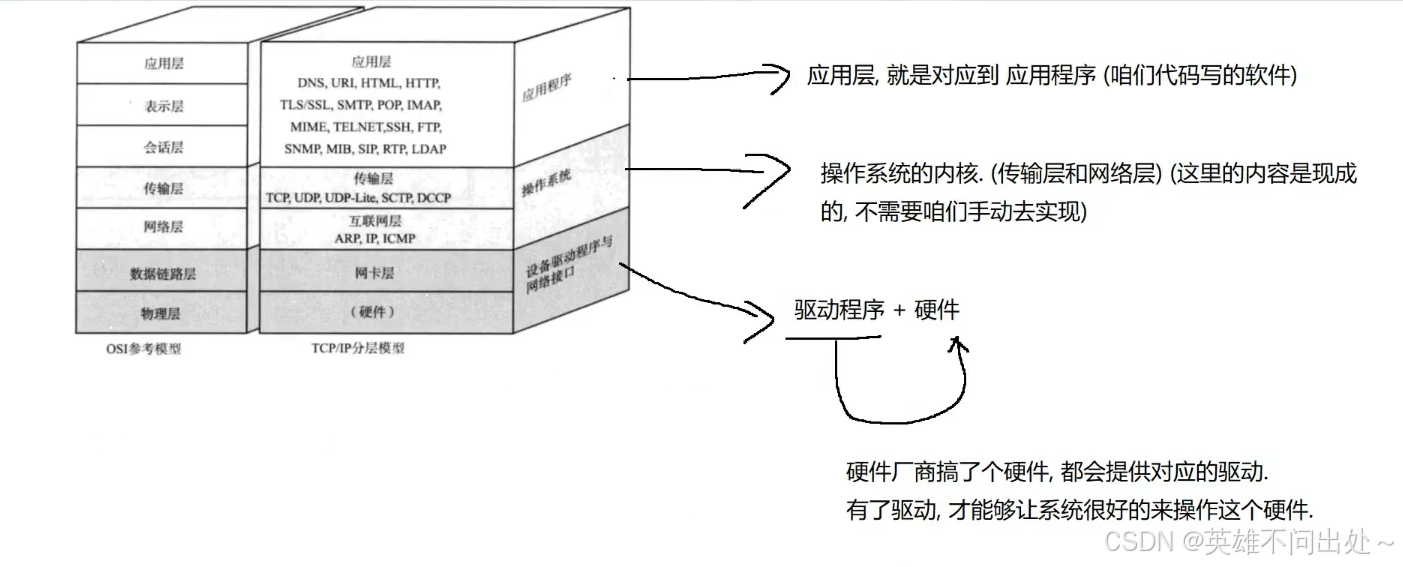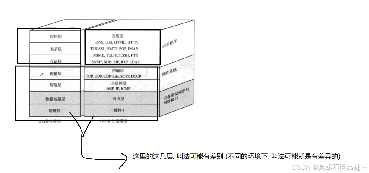 网络上一些说成是四层TCP/IP,因为他们没有把物理层算上