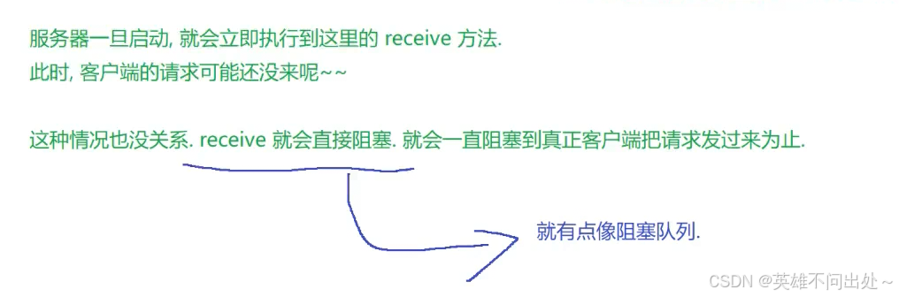 receive,start一启动,数据还没有来,就执行receive,会阻塞