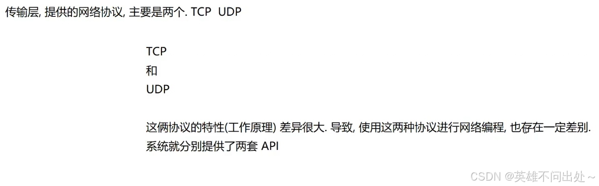 - 传输层存在两套不同的网络协议:TCP和UDP