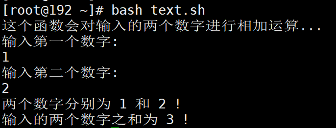 3 echo "这个函数会对输入的两个数字进行相加运算..."