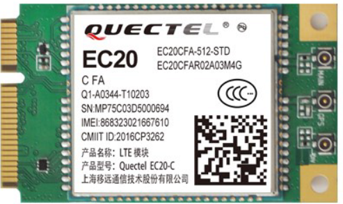 主板默认通过Mini PCIe 扩展 4G LTE/5G(和USB3.0 双层A口下接口功能二选一),适配移远EC20/EC200T/EC25,广和通L718等通用模组。