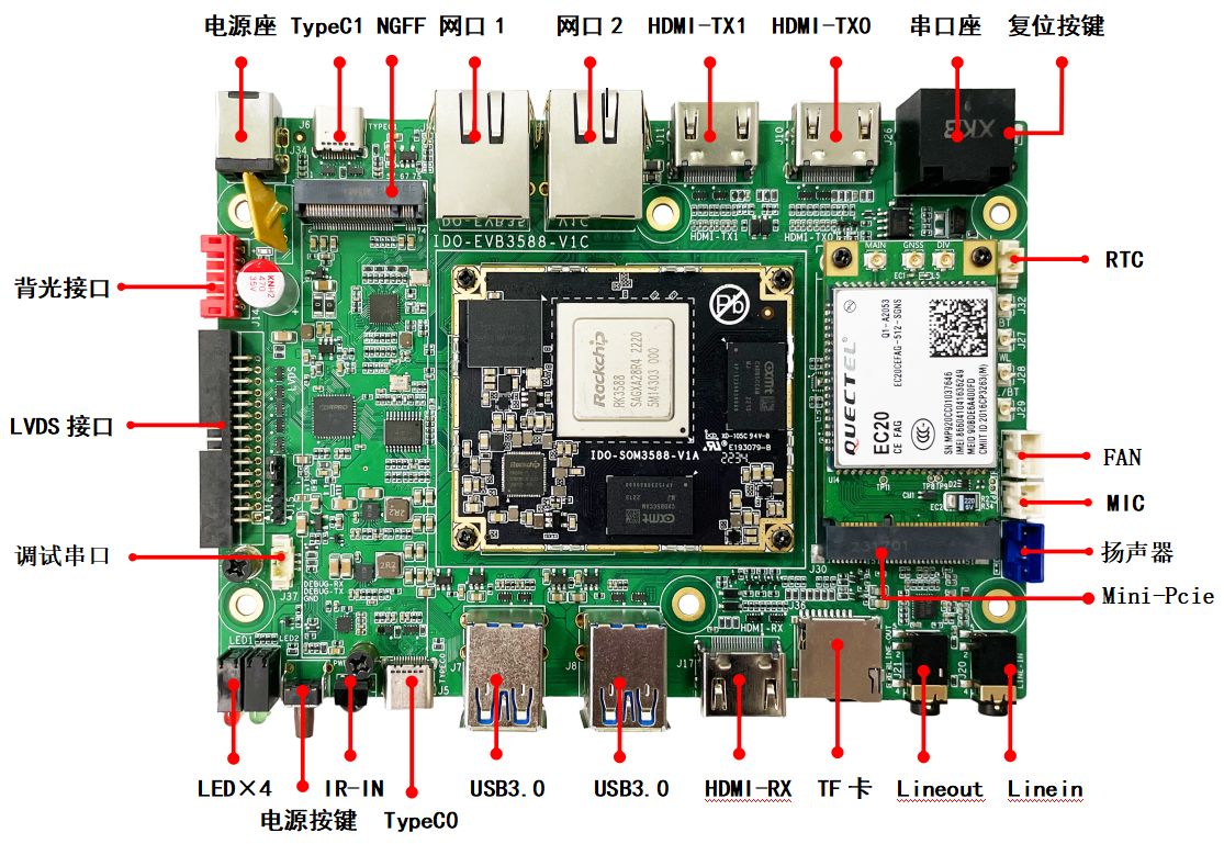 IDO-EVB3588-V1采用瑞芯微RK3588芯片设计的评估主板。