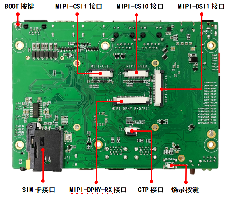 ,高速通信接口(Enthernet/Pcie3.0/USB3.0/TF卡),工业互联接口(RS485/RS232/UART)等。