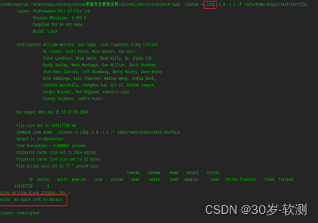 8、开始测试:sudo ./iozone -s 128g -i 0 -i 1 -f /etc/test/testfile