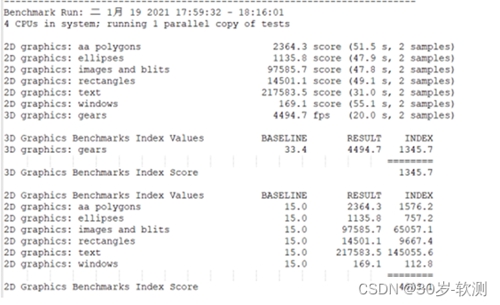 测试完成后,输出各项得分和总得分,如下图: