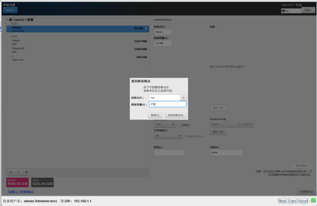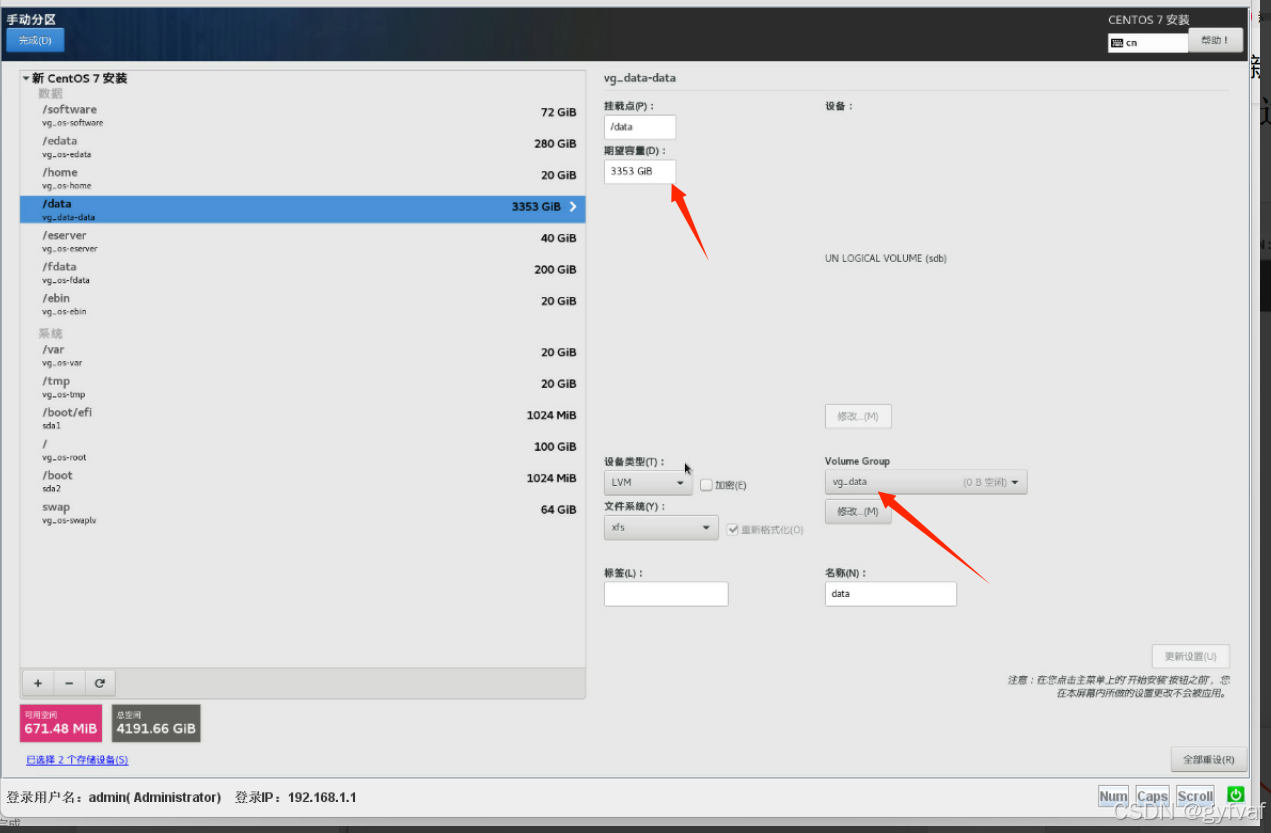 3.1.7、创建data分区,这个分区现在属于vg_os的,所以需要在创建一个VG组(vg_data)将data分区规划给它(其他的分区和上面的都一样,省略了)
