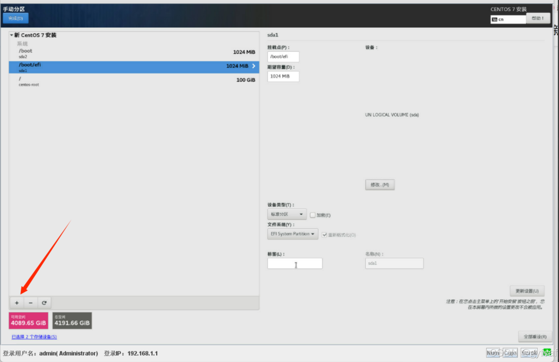 3.1.3、创建boot、boot/efi分区(第一块盘)(硬盘大于2T必须要创建boot/efi分区)