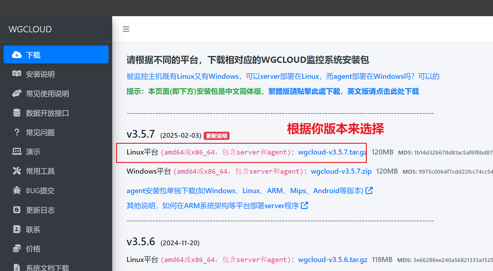 3.下载WgCloud安装包