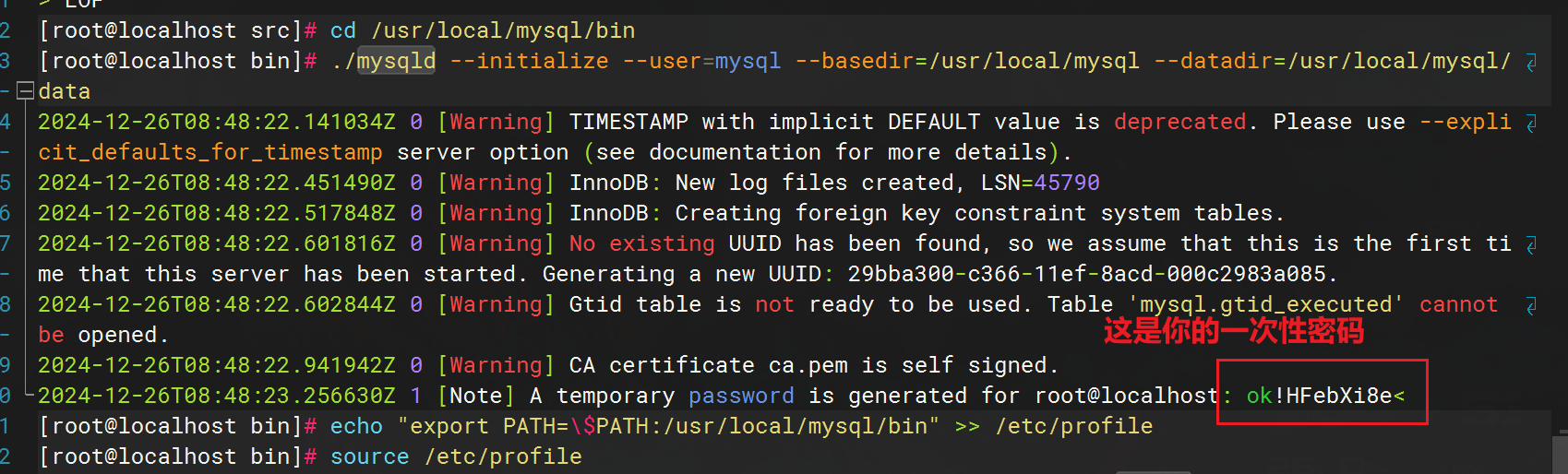 初始化数据库(请务必记录临时密码):
