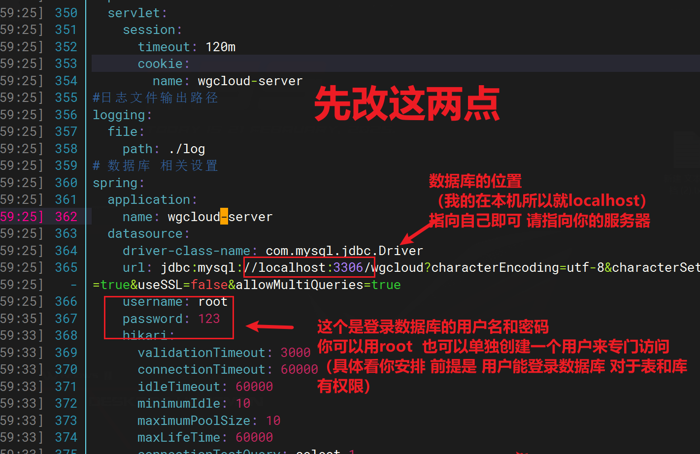 url: jdbc:mysql://localhost:3306/wgcloud?characterEncoding=utf-8&characterSetResults=utf8&autoReconnect=true&useSSL=false&allowMultiQueries=true