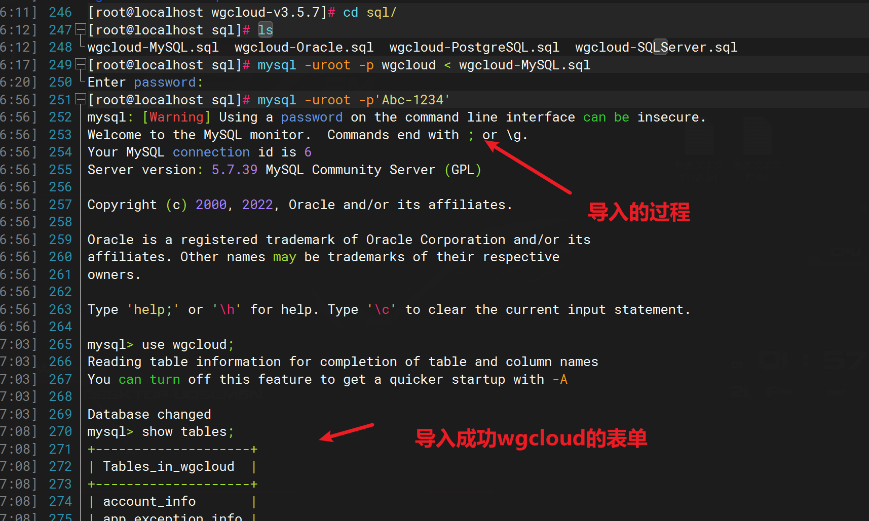mysql -uroot -p wgcloud < wgcloud-MySQL.sql