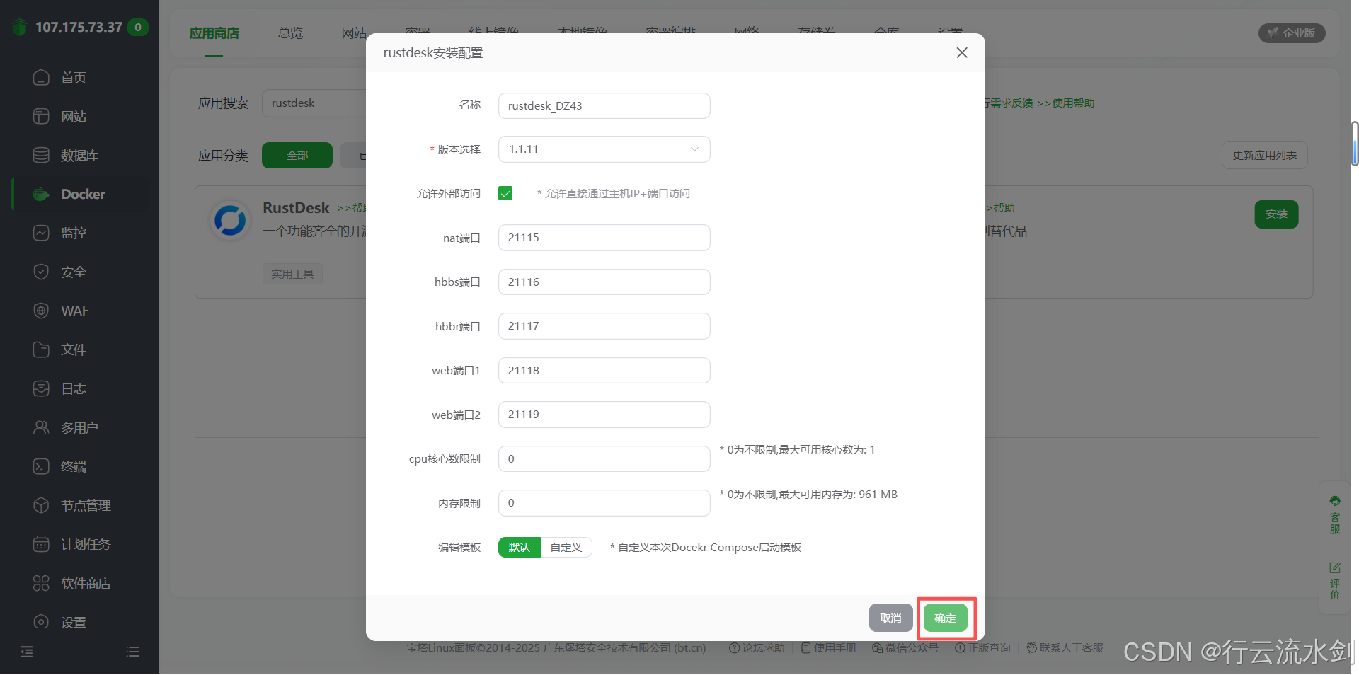 🚀 四、部署 RustDesk 服务端