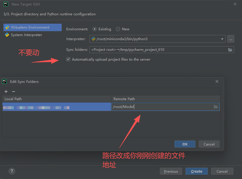 这里进行配置文件保存路径,其中Local Path不要动,这是你的本地文件所在路径,也就是你现在打开的pycharm项目路径。勾选Automatically upload Project files to the sever,这样你在本地改了代码之后他会自动上传你的代码到服务器。将Remove Path改成我们刚刚创建文件夹的路径。