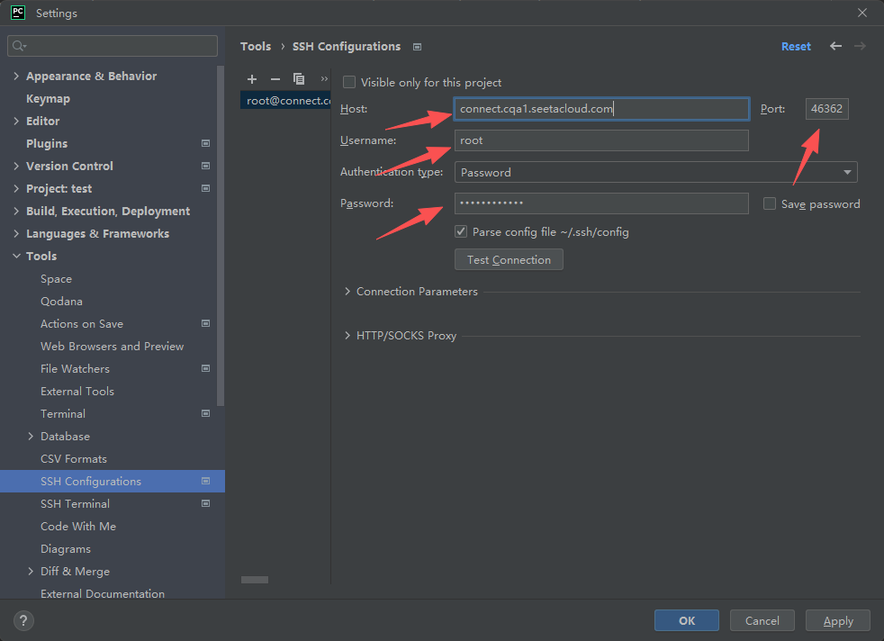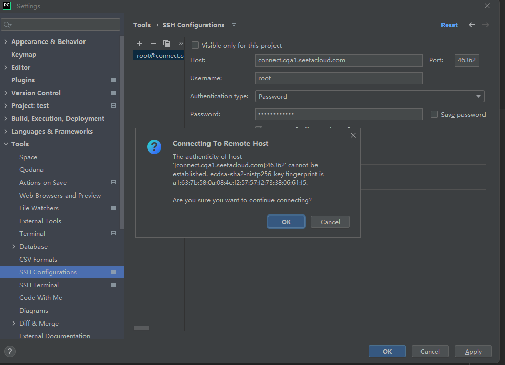 Host对应登录指令中@后面的内容,比如我的为:connect.cqa1.seetacloud.com