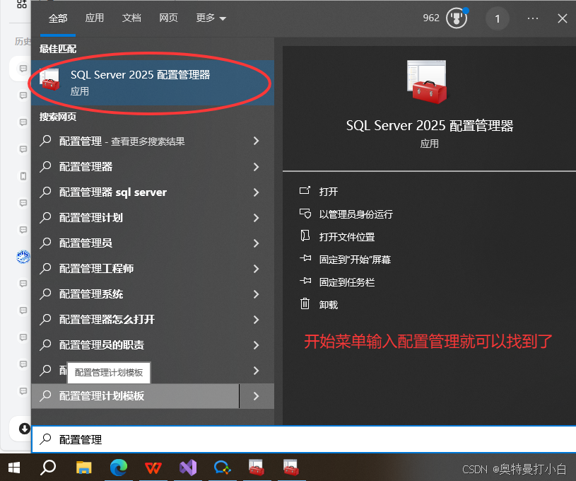 开始菜单,搜索“配置管理”,打开SQL Server 2025配置管理器