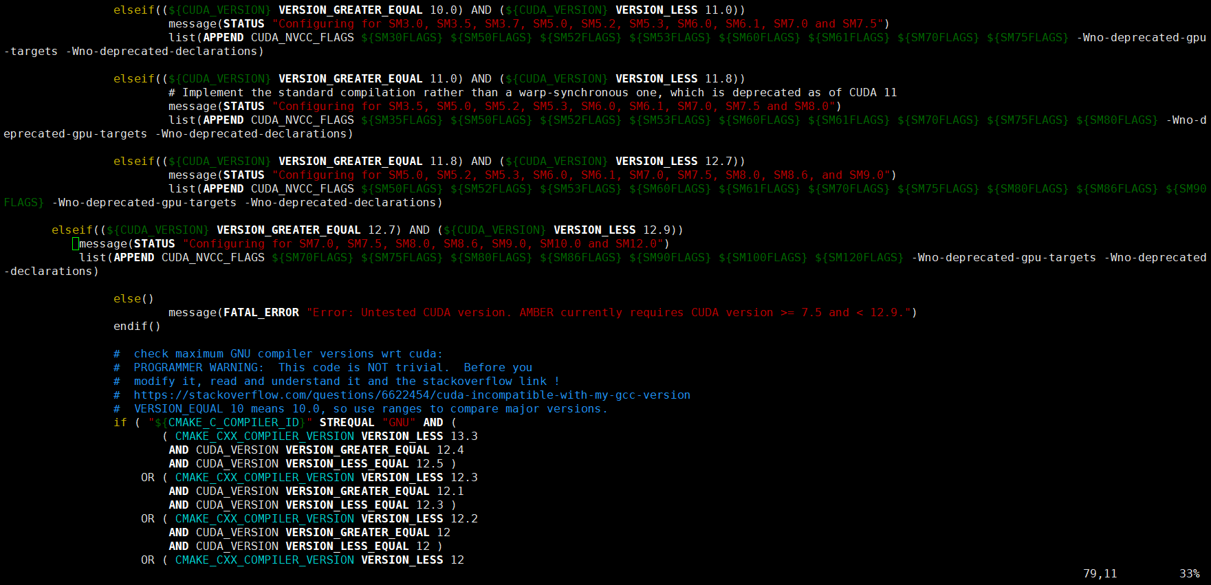 ambertools25_src 中 camke 下属的 CudaConfig.cmake 写明了使用 CUDA 的版本规定: