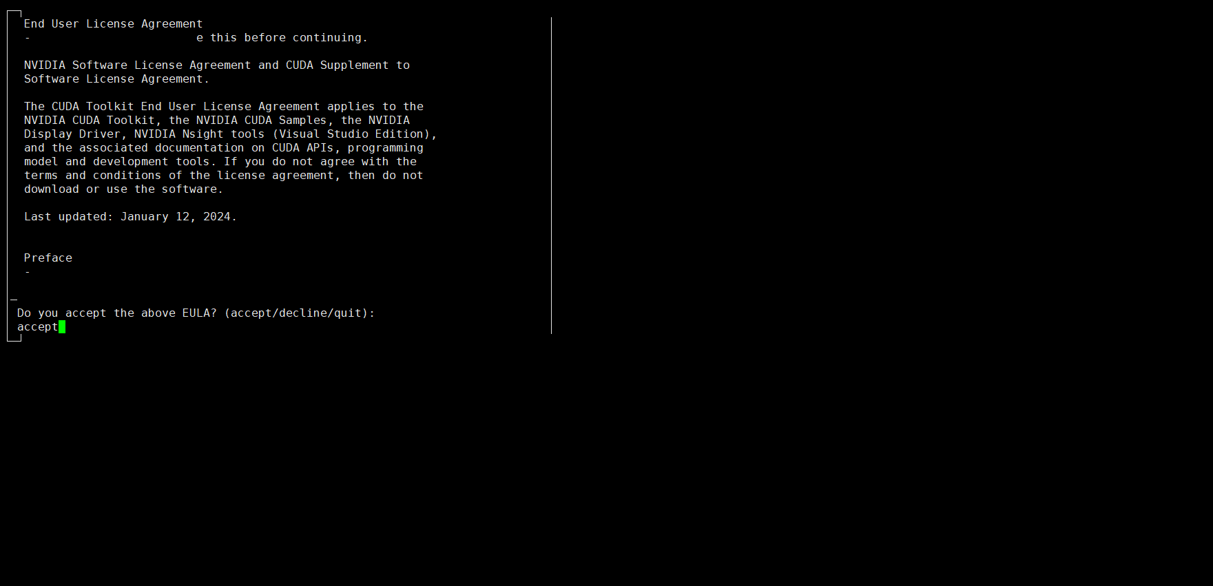 输入 accept 继续: