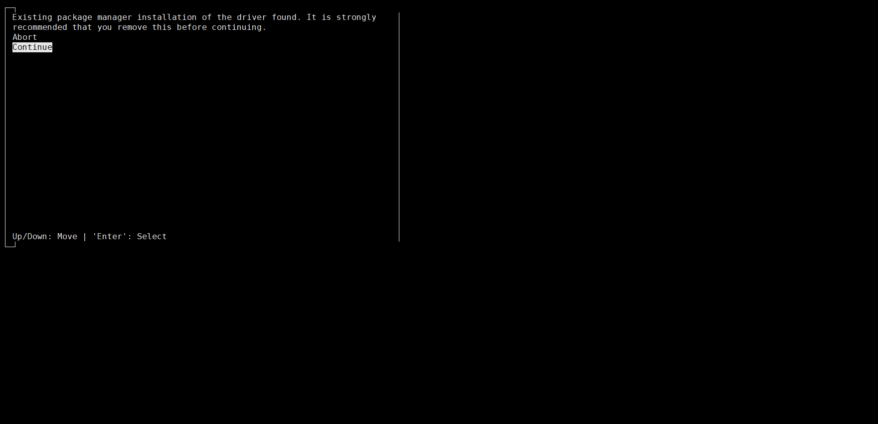 因为前面安装过了 NVIDIA 驱动,所以选择 Continue