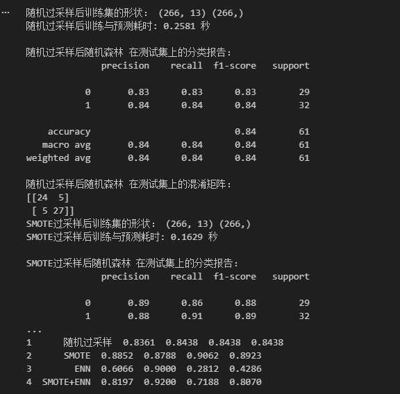 print("SMOTE+ENN组合采样后训练集的形状:", X_train_smote_enn.shape, y_train_smote_enn.shape)