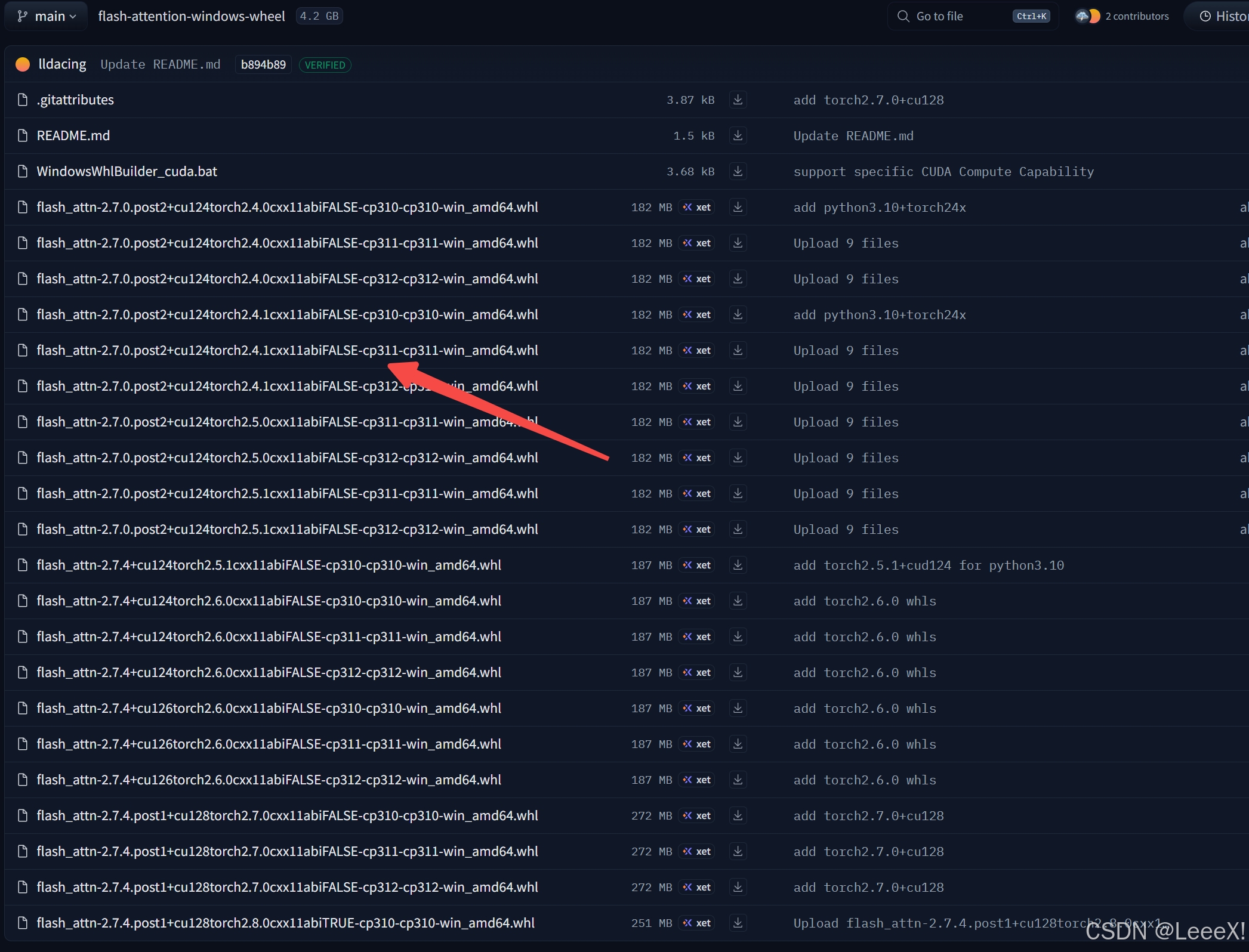 进入flash-attention,选中相对应版本,下载完成之后需要本地安装,复制到yolov12-main文件夹中,cd到yolov12-main文件夹后,进行安装。