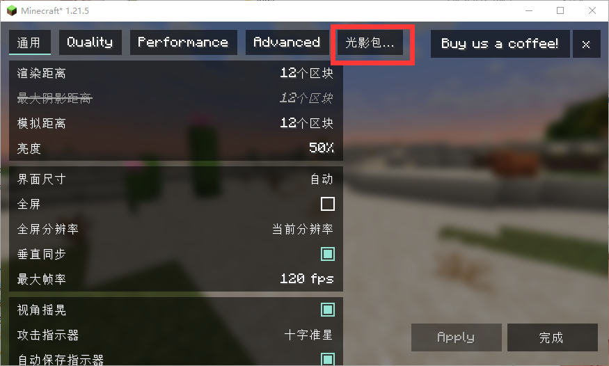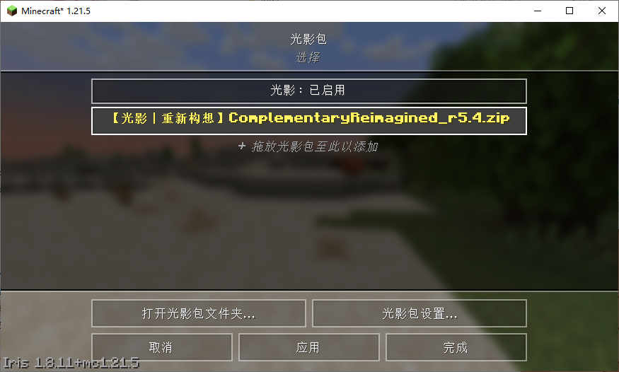 4.光影安装打开视频设置,点击上方光影包,选择你的光影包点应用