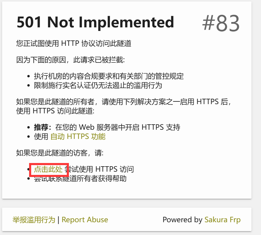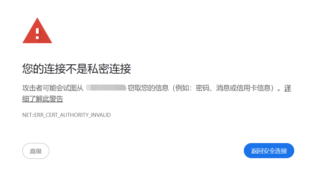 浏览器打开网址,出现以下页面是正常,点击“点击此处”。可能会被拦截,点击高级-继续前往即可。