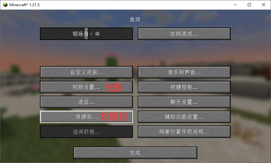 2.文件夹中找到这俩个文件夹,resourcepacks里放材质包,shaderpacks里放光影(都是zip格式,不要解压)