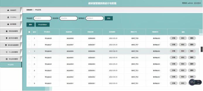 学生获奖管理:记录学生获奖情况,支持按教师、学生姓名等条件查询。