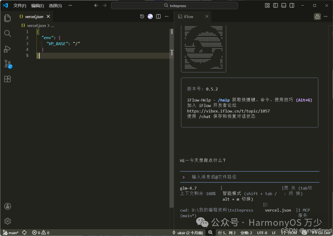 一文教你使用免费的GLM4.7,从此告别token焦虑(vscode 、DevEco Studio也能直接使用)