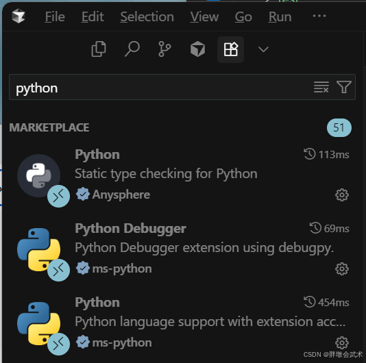 - 解决方法:在Extensions中搜索python并安装python + python Debugger,详情请见下图。