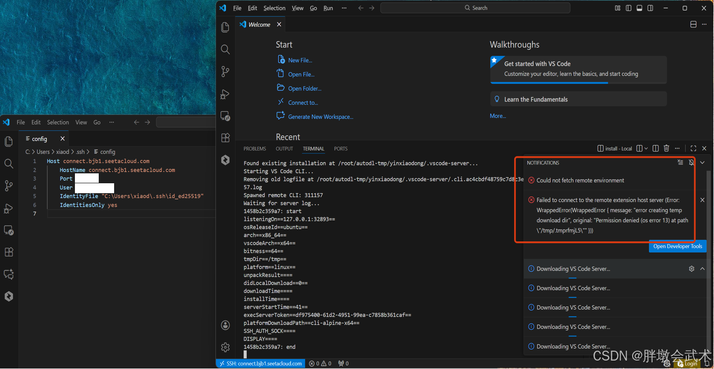 通过Visual Studio Code(VSCode)配合Remote-SSH插件,可方便地连接AutoDL远程服务器,实现跨平台远程开发、调试与部署。