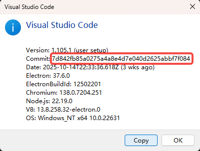 查看vscode版本ID: