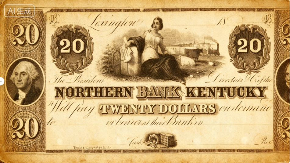 ▼图:列克星敦北部银行(Northern Bank of Lexington)1840年代发行的银行券样本,